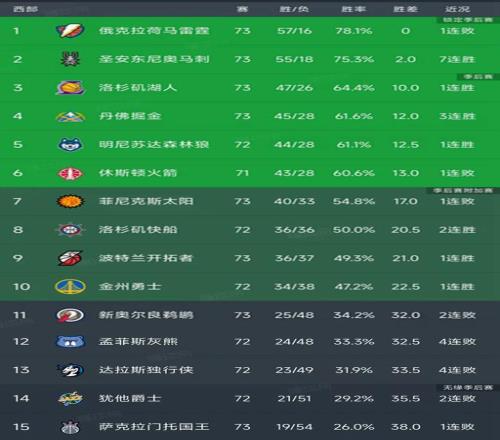 隨著雷霆12連勝被終結(jié),湖人137130,西部最新排名出爐!馬刺第2
