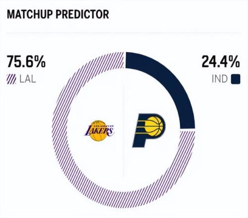 賽前,美媒ESPN對(duì)本場(chǎng)比賽進(jìn)行了勝率預(yù)測(cè),湖人隊(duì)勝率高達(dá)75.6% ,步行者勝率則僅有24.4% 。