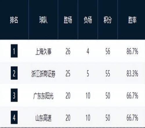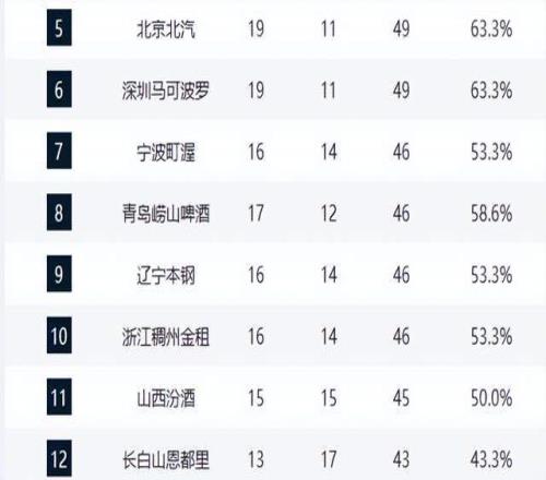 上海超廣廈重回第一,山東緊咬廣東,遼寧掉鏈子,前總冠軍30連敗
