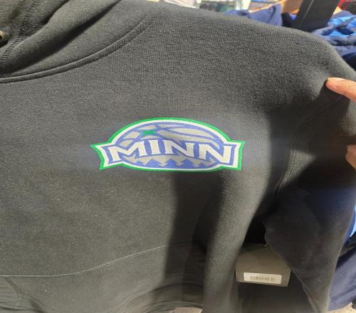 其次,還出現(xiàn)了一個(gè)印著“MINN”縮寫的弧形Logo。最讓人激動的是,消失已久的“鋸齒松樹”剪影也重新歸位了。這幾乎是在明示:那套被奉為經(jīng)典的“樹皮邊框”球衣,極有可能在2026年迎來現(xiàn)代版復(fù)刻。