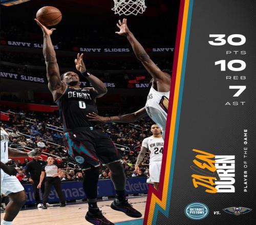 北京時(shí)間3月27日,底特律活塞129-108擊敗新奧爾良鵜鶘避免連敗。這場(chǎng)比賽活塞在第二節(jié)打出34-23的高潮一舉拉開(kāi)差距,杜倫在籃下打出統(tǒng)治級(jí)的表現(xiàn),而且他遭遇包夾后還能分出球權(quán)助攻隊(duì)友。