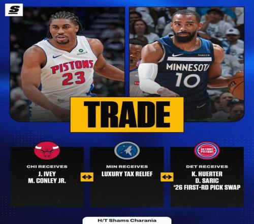 ——活塞得到赫爾特、沙里奇、2026年的受保護(hù)首輪互換權(quán)(與森林狼)