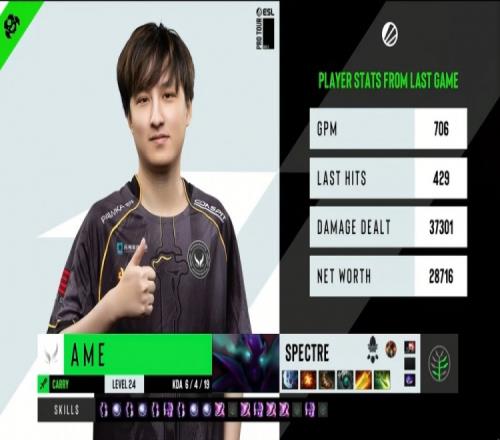 第二局前期哥哥幽鬼拿到rue花仙子一血后被換,雙方你來我往人頭交替上升。野區(qū)混戰(zhàn)森哥白牛沖panto得手,NTS支援拿到人頭。