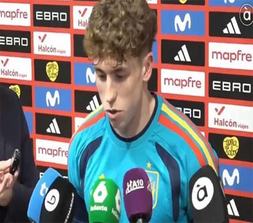 在西班牙與塞爾維亞的熱身賽中,維克托-穆尼奧斯迎來了國家隊首秀并斬獲首球,幫助斗牛軍團在主場3-0完勝對手。賽后,他在混合區(qū)接受了媒體采訪。
