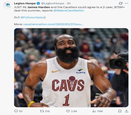 賽前就傳來(lái)一個(gè)好消息,哈登將拒絕執(zhí)行26-27賽季4231萬(wàn)的球員選項(xiàng)(僅保障1330萬(wàn)),他將與騎士達(dá)成一份全新兩年超過(guò)7500萬(wàn)的續(xù)約合同,第二年是球員選項(xiàng)。