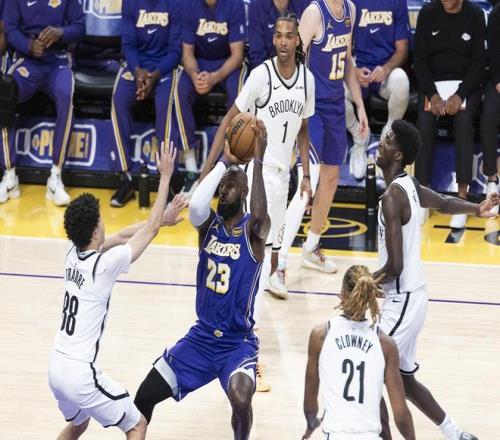 首節(jié)開局,籃網進攻瘋狂打鐵,詹姆斯助攻艾頓吃餅,里夫斯反擊上籃命中,15-4打停對手?;氐奖荣?,鮑威爾三分命中止血,艾頓抓帽以后又暴扣再度打停籃網?;氐奖荣悾@網打了一波11-2的小高潮,海斯兩罰一中以后,籃網再打進追到只差2分。兩隊對飆三分,第一節(jié)結束湖人35-30領先5分。
