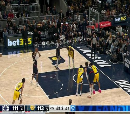 時間回到終場前50秒,兩隊比分108-113,快船落后于步行者。比賽看起來基本要結束了,這種時間節(jié)點落后5分,步行者的贏面還是很大的。