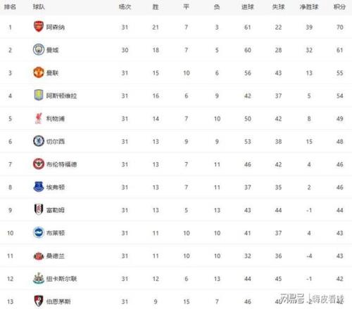 因此,從英超積分榜來看,阿森納得到70分,比第六名多出22分,剩余7輪情況下,成為第一支鎖定歐冠資格的球隊(duì)。少賽一場的曼城得到61分,歐冠資格也是沒有懸念的。
