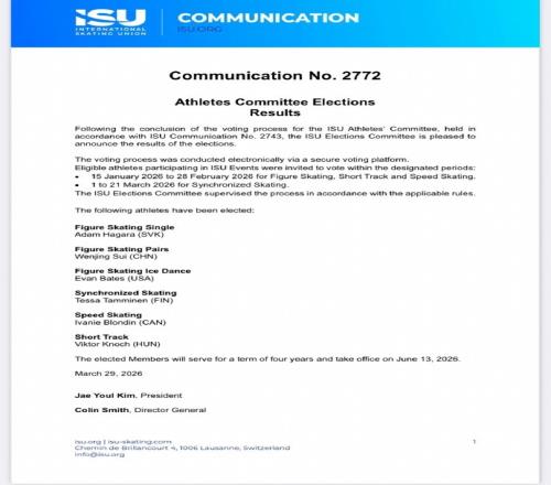 隋文靜當(dāng)選國際滑聯(lián)運(yùn)動員委員會委員,將于2026年6月13日履職