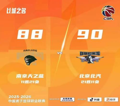 末節(jié)決戰(zhàn),漢茲干拔中距離,鄔挺嘉突破拋投打板。周琦壓哨放籃,趙睿、杰曼接連罰球取分。漢茲蝴蝶穿花突入禁區(qū)拋投入框,周琦禁區(qū)吃餅。漢茲再造殺傷兩罰中一,周琦二次進(jìn)攻得手,隨后兩罰中一,兩隊(duì)打成77平。杰曼對(duì)抗上籃,帕克調(diào)高弧度中投打板。趙睿接應(yīng)三分命中,球隊(duì)暫停調(diào)整。祝銘震壓哨底角三分命中,杰曼連突帶罰連得4分,球隊(duì)再叫暫停。翟曉川底角中距離顛進(jìn),柏清再殺內(nèi)線兩罰中一。帕克閃電上籃再追兩分,隨后眼看無(wú)法完成逼搶,迅速進(jìn)行犯規(guī)戰(zhàn)術(shù)。陳盈駿兩罰命中,威廉超遠(yuǎn)三分也有,可惜時(shí)間所剩無(wú)幾,最終全場(chǎng)比賽結(jié)束,南京天之藍(lán)88-90北京北汽。
