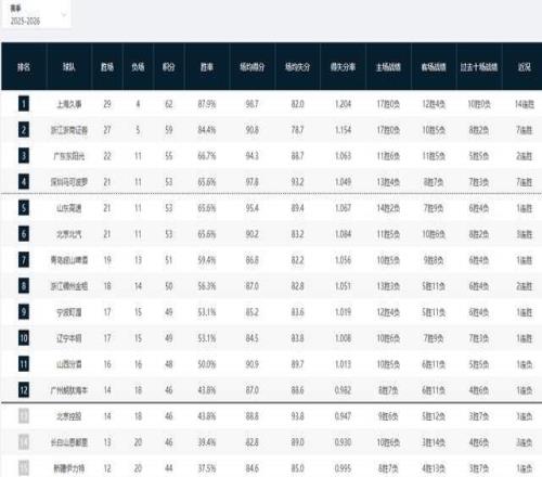 CBA積分榜最新排名!上海14連勝穩(wěn)居第一,廣東復(fù)仇江蘇殺回前三