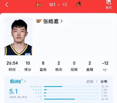 真正令人眼前一亮的是張皓嘉。在末節(jié)對手反撲、主力輪休之際,他挺身而出,貢獻10分、8籃板、2搶斷、2蓋帽,攻防一體的表現(xiàn)堪稱本場最佳替補。其積極的拼搶、精準的補防與關(guān)鍵時刻的得分,不僅穩(wěn)定軍心,更展現(xiàn)出成長為球隊重要輪換的潛力。