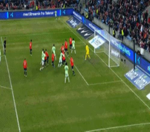 第54分鐘,努薩左路做球,桑德-貝格禁區(qū)內妙傳,前者積極前插,姆沃戈搶先一步出擊將球沒收。