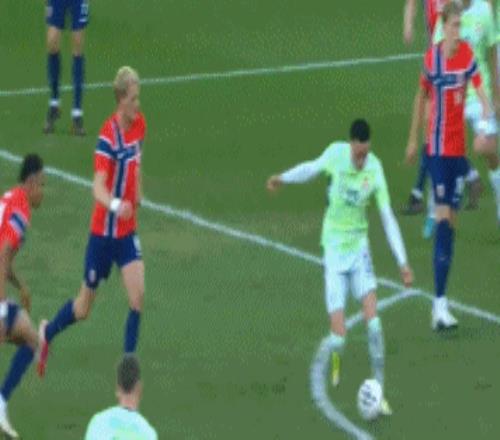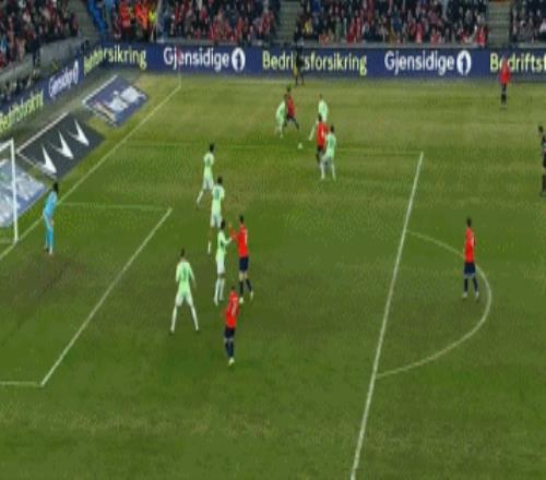 比賽開打之后,場面相當沉悶,兩隊都沒能組織起有效的攻勢。直到第30分鐘,索爾茨維特右路斜塞,哈蘭德禁區(qū)內送出妙傳,托爾斯比跟上推射,扎卡里亞及時封堵,挪威錯失良機。