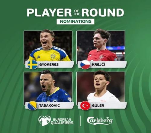 歐洲世預賽附加賽決賽最佳球員候選:居萊爾、約克雷斯在列