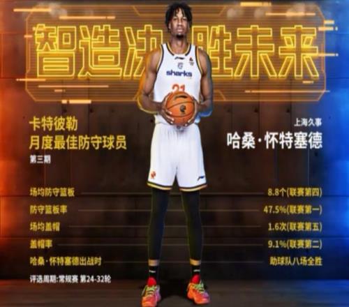 正是由于懷特塞德的出色表現(xiàn),他防守效率高居CBA聯(lián)賽前列,讓他成功當(dāng)選第3期月度最佳防守球員。