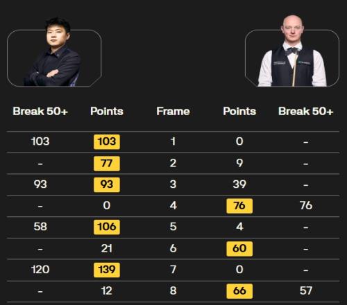 半場(chǎng)過后,趙心童3-1領(lǐng)先,最終他以5-3的比分領(lǐng)先韋克林,結(jié)束第一階段。兩人的第二階段對(duì)決,將于4月3日凌晨2點(diǎn)進(jìn)行。