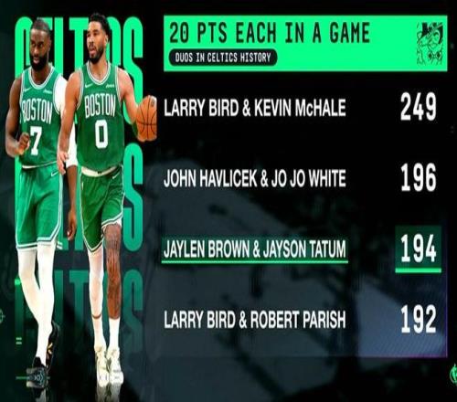 布朗和塔圖姆第194次單場得分均20+,凱爾特人隊史雙人組第三