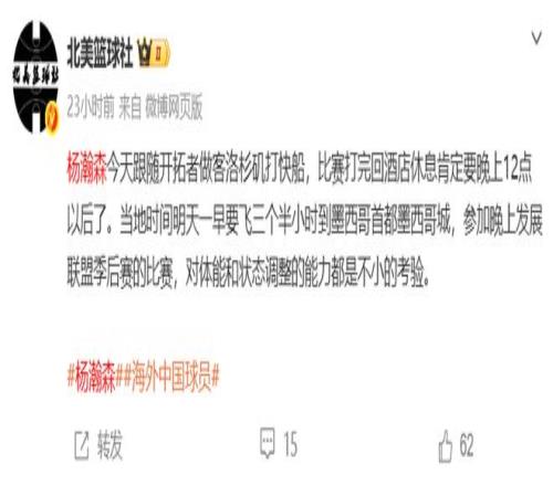 由于前一天楊瀚森還在跟隨開(kāi)拓者客場(chǎng)對(duì)陣快船,然后才從洛杉磯飛往墨西哥,舟車勞頓外加高原反應(yīng)明顯看出他在PK墨西哥城隊(duì)長(zhǎng)比賽中身體狀況不佳容易疲勞,導(dǎo)致其上半場(chǎng)出戰(zhàn)時(shí)間被切得零碎,約15分鐘里投籃4中2得到4分3板1助1帽。