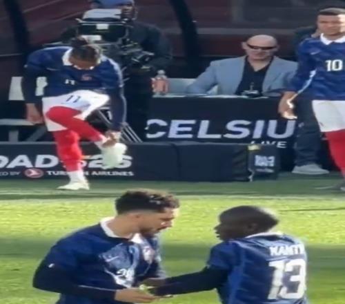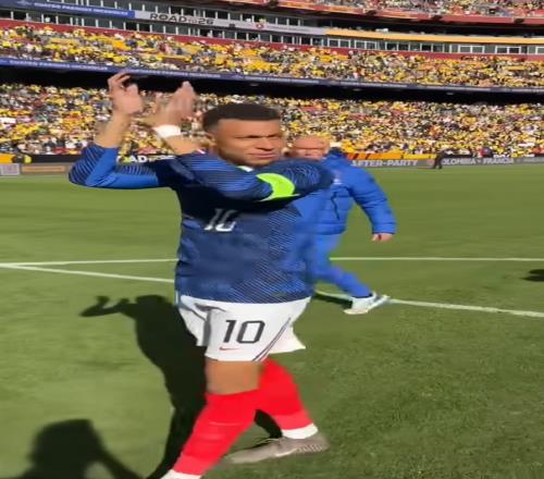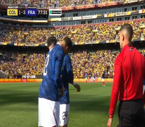 本場(chǎng)比賽坎特首發(fā)出任法國(guó)隊(duì)隊(duì)長(zhǎng)并且踢滿全場(chǎng)。比賽第78分鐘,姆巴佩替補(bǔ)登場(chǎng)。鏡頭中可以看到,姆巴佩在登場(chǎng)前向被換下的謝爾基示意,要他把坎特的袖標(biāo)拿過(guò)來(lái),謝爾基則照做,并在下場(chǎng)時(shí)把袖標(biāo)戴到了姆巴佩的手臂上。