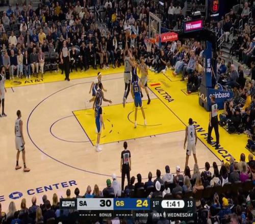 第一節(jié)結(jié)束前的一幕讓人印象深刻,當(dāng)時(shí)文班亞馬接球,面對(duì)理查德防守,運(yùn)一步后,直接在內(nèi)線協(xié)防的尤爾特賽文頭上完成了一記天賦碾壓式的超級(jí)隔扣。