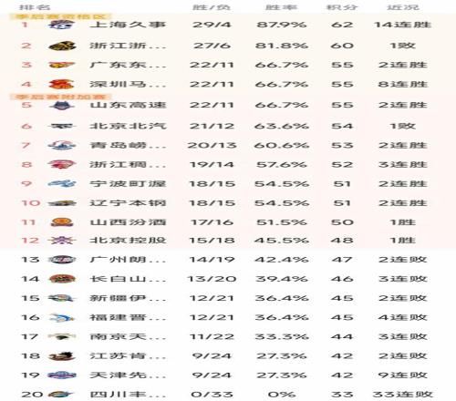 CBA最新積分榜