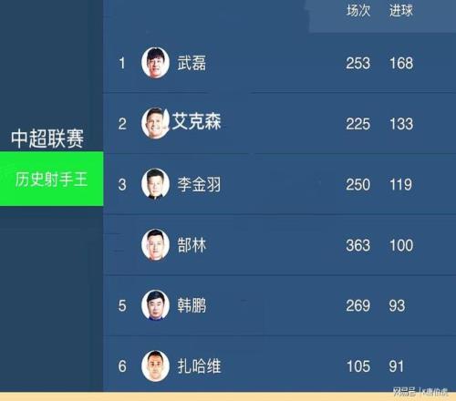 歷史最佳射手榜單第一名也是武磊的168球,比第二名的艾克森要足足多了35個進(jìn)球,然而其對比第6名的外援扎哈維105場91球的0.86超強(qiáng)效率而言就有些相形見拙了。
