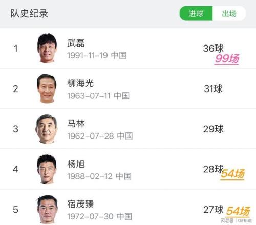 在國家隊(duì),武磊以99場比賽進(jìn)36球的數(shù)據(jù)排在歷史射手榜的首位,但是要論效率他依然不是最佳的那個。比如楊旭和宿茂臻的進(jìn)球數(shù)雖然只有28個和27個,但是他倆的出場次數(shù)均只有54次。