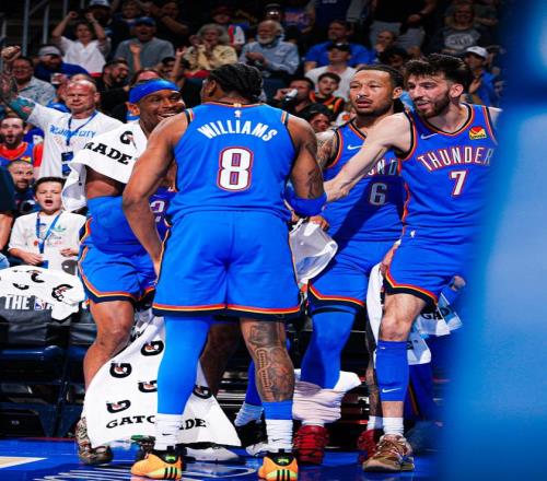 雷霆隊(duì),以賽亞喬3分球8中6砍下了20分、多爾特3分球6中4得到14分1助2斷、杰倫·威廉姆斯10中4得到了10分9板8助2斷、米切爾7中3得到10分3板1助、華萊士8分5板2助、麥凱恩8分2板2助、哈爾滕施泰因7分6板2助2斷2帽、杰林·威廉姆斯7分6板2助、霍姆格倫7分4板2斷、肯里奇·威廉姆斯7分2板2助、維金斯7分1助、卡爾森4分4板1助2帽、托皮奇2分2板2助。