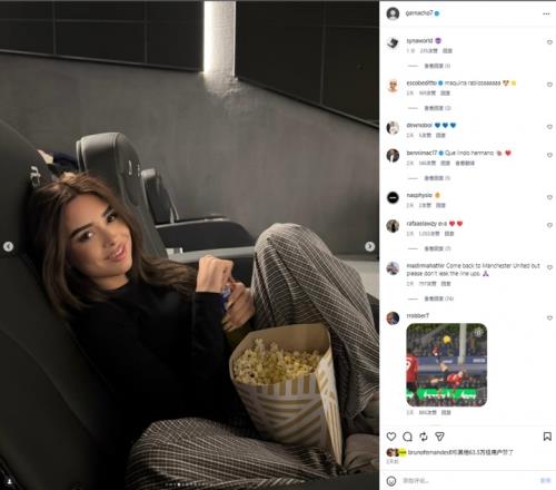 加納喬在社媒的更新中曬出了一系列圖片,包括比賽現(xiàn)場照片,在高級餐廳用餐等等片段。但最引人注目的是眾多圖片中的一張,一名棕發(fā)美女、西班牙網(wǎng)紅洛巴茲在電影院吃爆米花的照片。