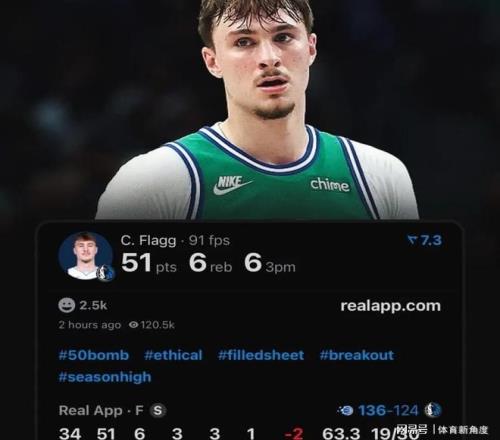 盡管獨(dú)行俠以127比138惜敗于魔術(shù),但這場(chǎng)帶來(lái)了一個(gè)振奮人心的消息?;陆叹氃谫惡蟊硎荆蜿?duì)已找到了新的未來(lái)核心,并希望媒體將關(guān)于東契奇的篇。如今看來(lái),這一預(yù)言已然成真。弗拉格在比賽中出戰(zhàn)34分鐘,30次出手命中19球,其中三分球9投6中,獨(dú)得51分,同時(shí)貢獻(xiàn)6個(gè)籃板和3次助攻。NBA歷史上最年輕的50分先生就此誕生,這一成就無(wú)疑令人矚目!