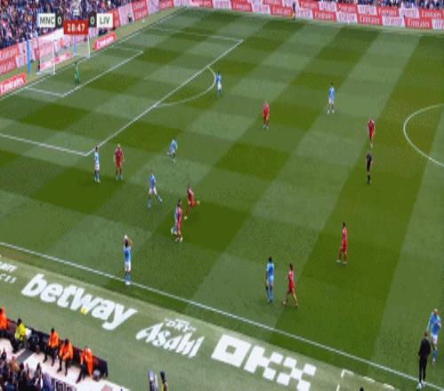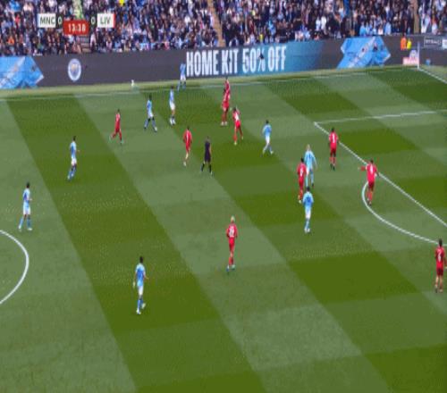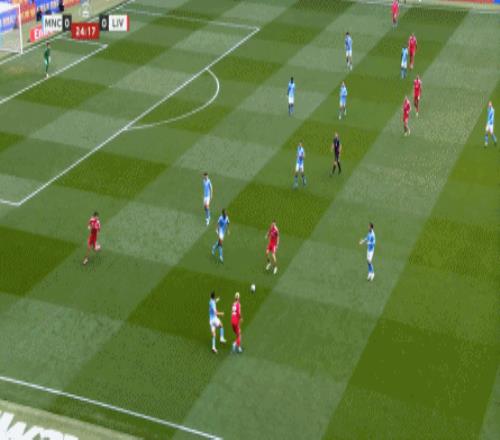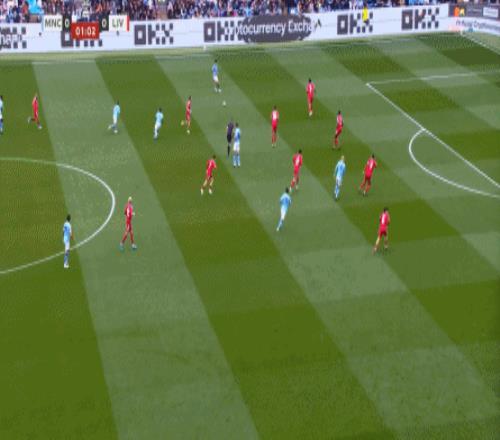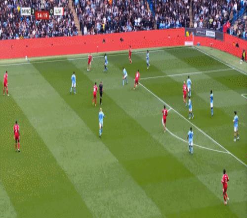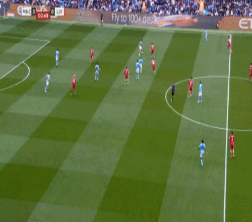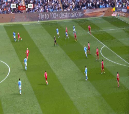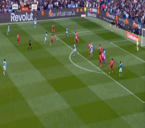 最后到了第29分鐘,曼城已經(jīng)可以打出利物浦想要打的橫移進(jìn)攻,讓利物浦感受到了真實(shí)的壓力: