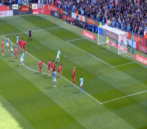 最終在第37分鐘,曼城在定位球二次進(jìn)攻里,不斷地用帶球和前插來(lái)制造利物浦的壓力,一點(diǎn)點(diǎn)打到后衛(wèi)線上,從而制造了范戴克的犯規(guī)和點(diǎn)球機(jī)會(huì):