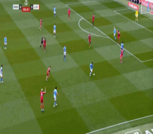 相較于此,還是寄希望于不要被打花更為現(xiàn)實(shí),因?yàn)樵诘?7分鐘,曼城恰恰是抓住赫拉芬貝赫的上前逼搶,通過(guò)滲透逐步打穿了利物浦的中場(chǎng),從而打出了第四球: