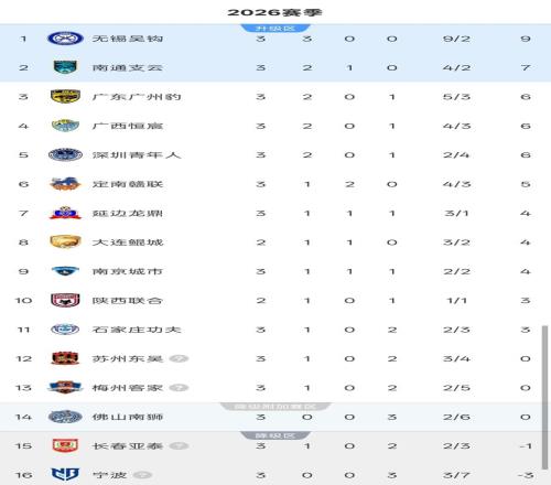 中甲3輪積分榜:升班馬9分領(lǐng)跑,第2支負(fù)分清零球隊(duì)誕生,3隊(duì)首勝