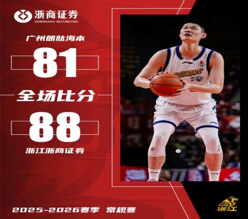 4月6日,CBA常規(guī)賽第35輪,浙江浙商證券客場(chǎng)挑戰(zhàn)廣州朗肽海本。首節(jié)雙方對(duì)抗激烈,比分交替上升,第二節(jié)浙商證券男籃找到三分手感,外線頻頻命中,迅速將比分拉開(kāi)到兩位數(shù),第三節(jié)廣州朗肽海本加強(qiáng)防守端的身體對(duì)抗,一度將比分迫近,第四節(jié)浙商證券充分發(fā)揮內(nèi)線優(yōu)勢(shì),多次搶下前場(chǎng)籃板打進(jìn),最終,浙江浙商證券88-81戰(zhàn)勝?gòu)V州朗肽海本終止連敗。