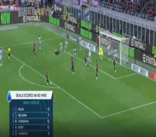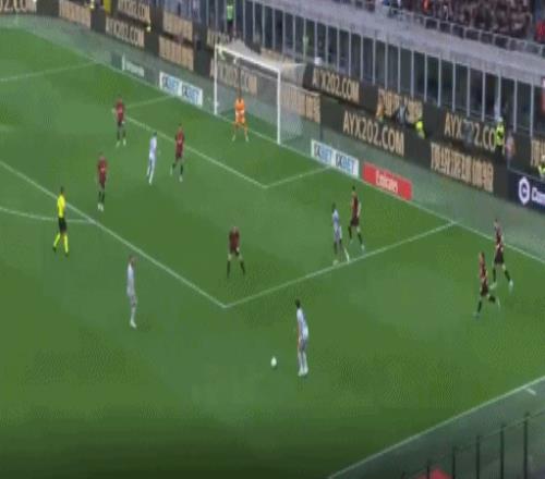 第32分鐘,米蘭錯失了扳平比分的絕佳良機,萊奧門前搶點射門卻離譜變成解圍。