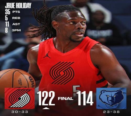 常規(guī)賽,開拓者客場122-114戰(zhàn)勝灰熊。