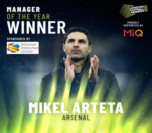 官方:阿爾特塔當(dāng)選倫敦足球獎(jiǎng)年度最佳教練,賴斯當(dāng)選最佳球員