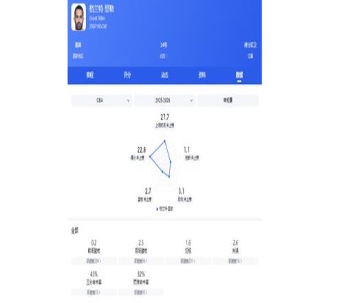 此外,他場均還能為球隊貢獻4.1籃板2.1助攻1搶斷,同時僅1.3次失誤,表現(xiàn)非常全面。