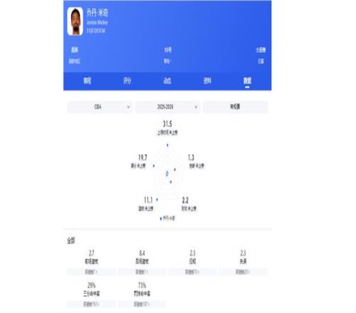 米奇稱得上是CBA的勞模外援,出場必首發(fā),場均出場時間高達31.7分鐘。而且他攻防兼具,場均能得近20分,同時還有近11個籃板、1.2次搶斷、2蓋帽。