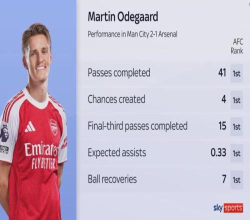 厄德高在對曼城比賽中的數(shù)據(jù):