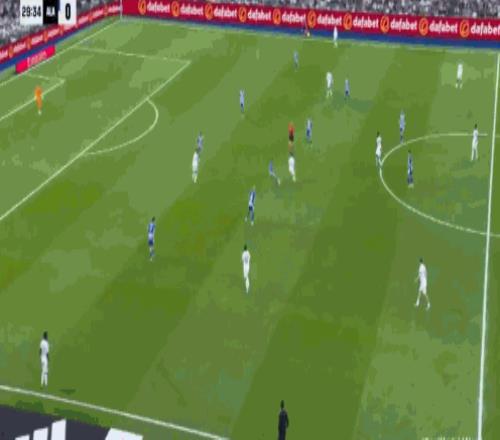 第44分鐘,貝林厄姆傳球,米利唐射門擊中橫梁