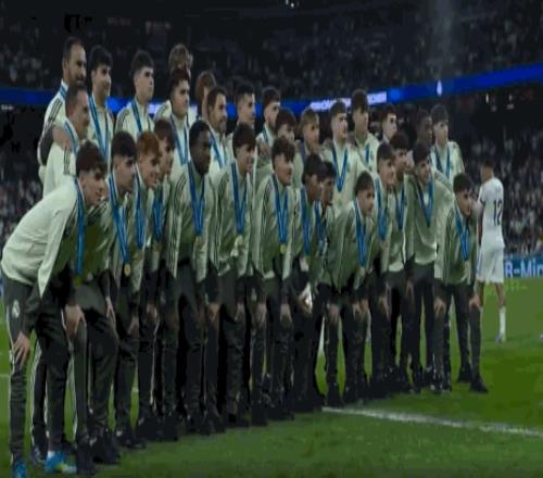 恭喜,昨天贏得歐青聯冠軍的皇馬U19亮相伯納烏