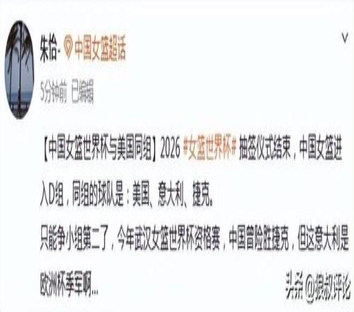 中國女籃抽簽“死亡之組”!媒體:美國肯定打不過意大利也有難度