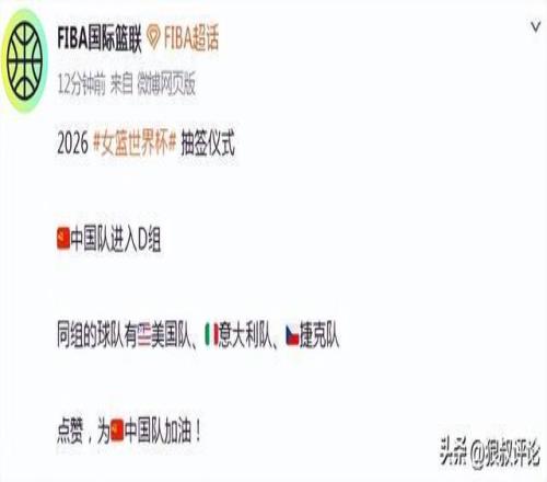 北京時間4月22日,2026女籃世界杯小組抽簽儀式在德國柏林舉行,中國女籃被分在D組,同組對手有美國女籃、捷克女籃和意大利女籃。