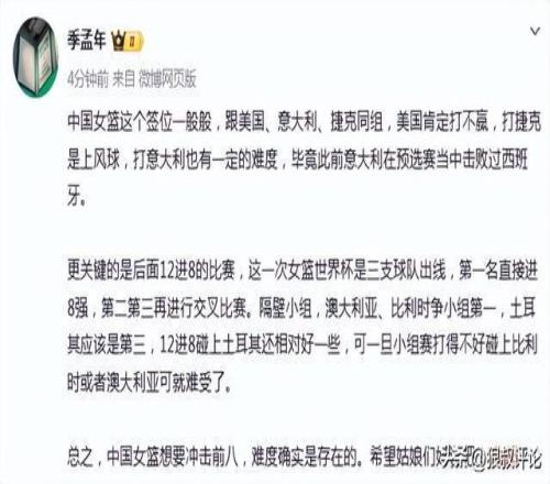 總之,中國女籃想要沖擊前八,難度確實是存在的。希望姑娘們好運吧!