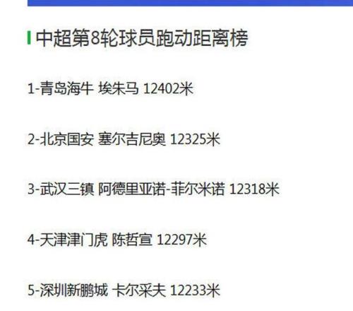 4月28日,2026賽季中超官方發(fā)布了聯(lián)賽第8輪球員跑動(dòng)距離榜。青島海牛外援埃朱馬以12402米排名第一,值得一提的是,這是他本賽季第三次在跑動(dòng)距離榜登頂。真能跑?。”据啞褒R魯?shù)卤取?,青島海牛主場4-1大勝山東泰山隊(duì),每名球員都非常積極,埃朱馬是全隊(duì)血拼的一個(gè)縮影。